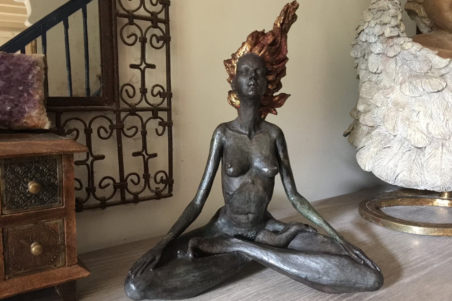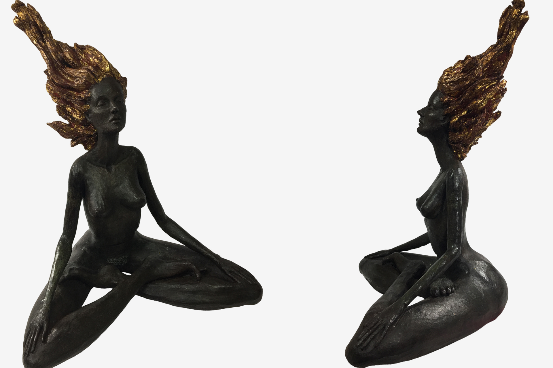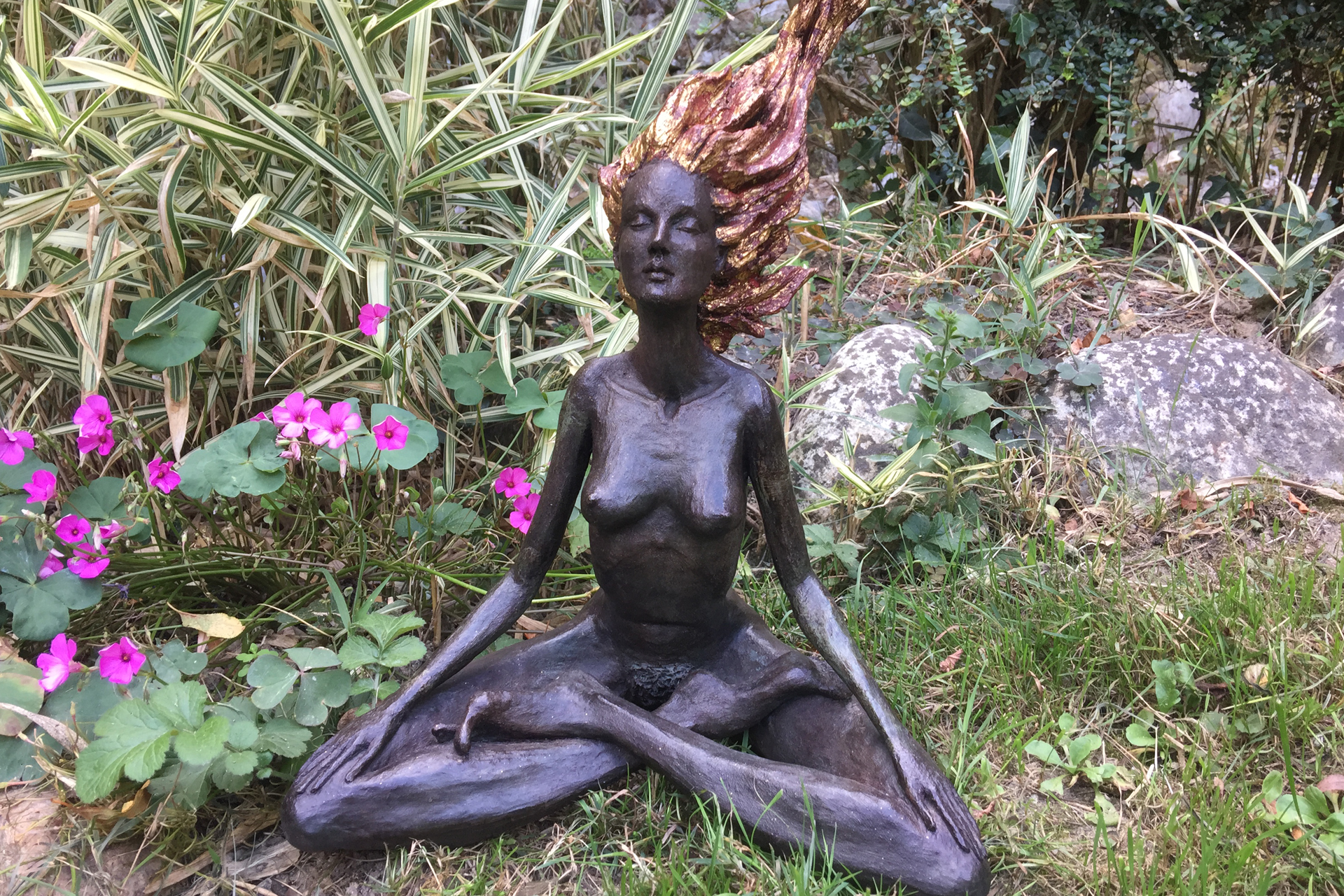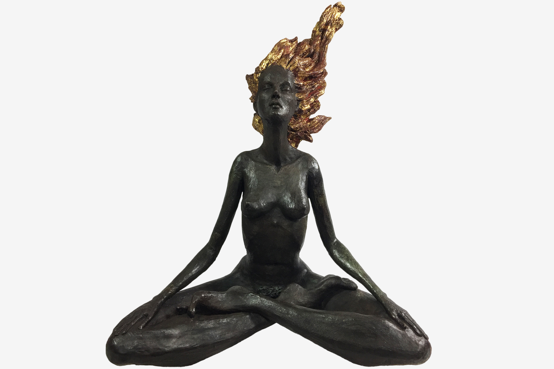 cheveux or, méditante, zen
